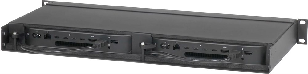 1HE robust rack-kit i stål för att rackmontera upp till två Mac mini. OBS inte kompatibel med nya Mac mini 2024.