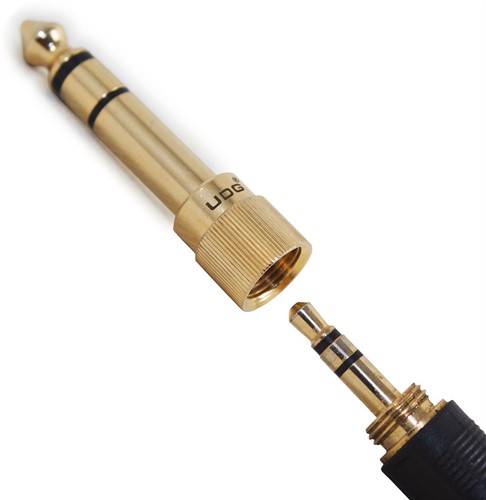 The UDG Ultimate Headphone Jack Adapter Screw 3.5mm (1/8”) to 6.35mm (1/4”) connect your headphone’s mini-jack plug to a larger stereo jack output. It has a grippy surface to help you grab hold of it. The gold-plated adapter provides a solid connection without compromising sound quality.