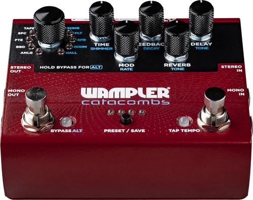The Wampler Catacombs is a programmable, all-in-one delay and reverb pedal that
