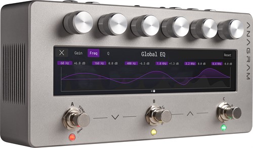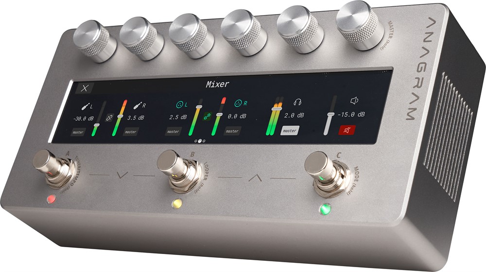 Additionally, headphone monitoring, tap tempo synchronization, tuner, looper and global parametric EQ and support for user-generated IRs make ANAGRAM indispensable for modern performance and recording workflows. Rugged anodized aluminum chassis ensures durability on the road, while a compact form factor and power via 9V input or USB-C (PD) offer unmatched portability.