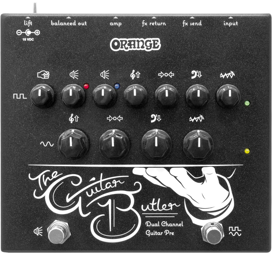 Guitar Butler är en riktigt högklassig Preamp för elgitarr och tillverkas i England. Den har Clean/Overdrive-kanaler, dubbla Master-volymer, 3-bands EQ per kanal, effektretur, utgångar både för slutsteg och en balanserad line-signal som kan kopplas direkt till mixer/PA.