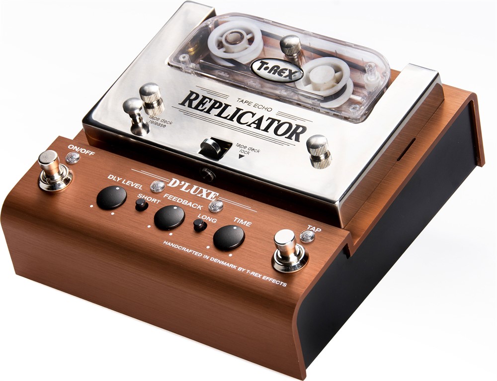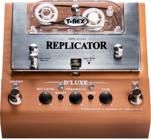 T-rex är tillbaks med en ny version av sin fantastiaka Replicator. Denna version kallas D’luxe och är summeringen av vad det lärt sig från deras tidigare versioner. Pedalerna är handbyggda Danmark och fortsätter att sätta standarden för vad en Delay pedal innebär. Glöm alla gamla otympliga lådor i samma storlek som en mindre förstärkartopp, nu kan du sätta dit analoga tape Echo på pedalbordet. Man har även här lyckats att få till en Tap tempo funktion och Saturation på repetitionerna.