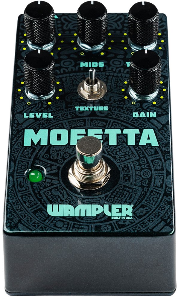 The Mofetta is a supercharged MOSTORTION, reborn and amplified that delivers the classic, amp-like overdrive, massive headroom, and versatile 3-band EQ that made the original so famous. Wampler wanted "more" and added a Texture Switch that introduces actual MOSFETs into the pedal's overdrive section for a bolder, more articulate tone. The Mofetta preserves everything you love about the early '90s legend with a powerful new Wampler dimension.