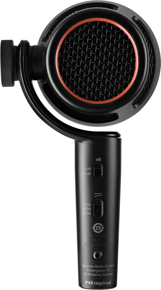Aktiv dynamisk instrument mikrofon med "Swivel Joint"-mekanism. Austrian Audios ingenjörer har utvecklat ett vridsystem för mikrofonkorgen som tillåter en 220° rotation. Mikrofonen kan mycket enkelt justeras exakt efter ljudkällan eller enligt personliga ljudpreferenser utan att behöva justera eller lossa på mikrofonstativet.