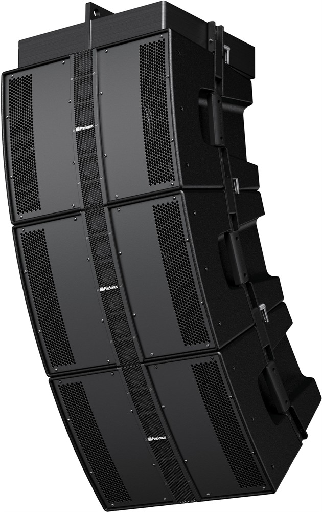 - Continuous-directivity constant curve array with six 2-inch cone drivers disperses sound 120° horizontally