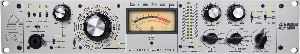 The Gainlab Audio Bishop is a high-end analog channel strip designed to bring warmth, character, and precision to your recordings. Combining a mic preamp and dual slope optical compressor in one sleek unit, the Bishop delivers rich harmonics and smooth dynamics, making it an excellent choice for both tracking and mixing. With its tube-driven circuitry and carefully crafted vintage-inspired design, this channel strip is perfect for adding depth and musicality to vocals, instruments, and entire mixes. Whether in the studio or on stage, the Gainlab Audio Bishop offers the flexibility and sonic quality that professional engineers and producers demand.