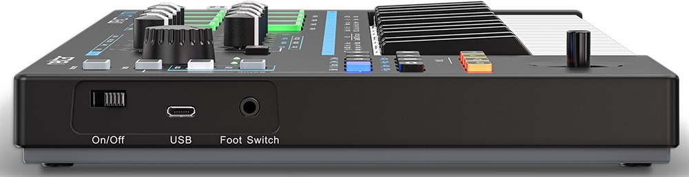- Footswitch jack 1/8″ (adapter to 1/4″ included)
