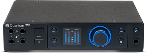 Power your project with the Quantum HD 2 – the recording interface for project studios and full band recordings. The culmination of 30 years of innovation, the Quantum HD 2 features two newly redesigned high-definition MAX-HD mic preamps with +75 dB of gain – making it ideally suited for today’s most popular microphones. Guitarists and bassists will love the two instrument inputs, which were co-developed with Fender engineers. An Auto Gain button sets the perfect gain level for your microphones and instruments. You also get two re-amp outputs so you can send audio from your DAW to your guitar or bass amp and re-record it to experiment with different amps, pedals, and mic placements. An illuminated push encoder provides flexible control over gain level and output volume, making it great for self-produced recording.
