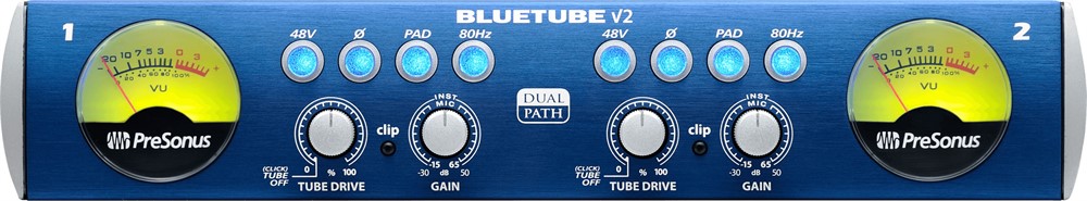 Equipped with instrument and mic inputs and built for serious gigging, the PreSonus® BlueTube DP V2 dual-path mic/instrument preamplifier is a great choice for guitarists, bassists, singer/songwriters and more. Compact, affordable and capable of a stunningly wide range of tones, the BlueTube DP V2 offers two independent channels with combo mic/instrument inputs and unbalanced ¼-inch and balanced XLR line outputs. You can use it as a preamp and as a direct box (DI) for guitars and basses. Singer-songwriters can run the vocal through one channel and a guitar through the other, feeding both to the PA - no guitar amp needed.