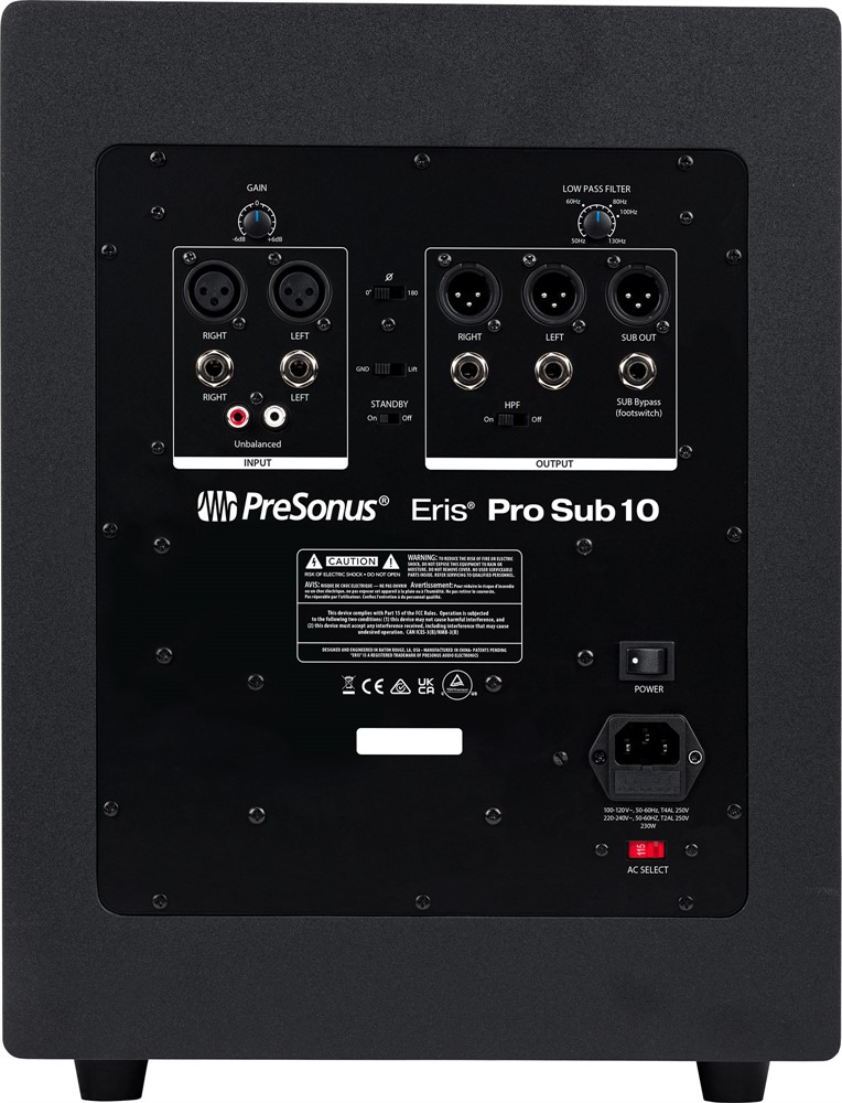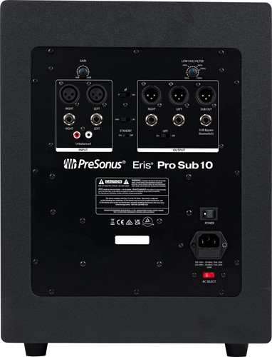 Powerful and musical, the PreSonus® Eris Pro Sub 10 active, front-firing studio subwoofer is designed to deliver fast and accurate transient response, extending low frequencies down to 20 Hz, allowing you to hear the full-spectrum range of your mix. Driven by 170W (RMS) Class AB amplification, the Eris Pro Sub 10's 10-inch, glass-composite, low-frequency driver delivers tight, responsive sub-bass, thanks to its lightweight and rigid cone. This design provides lower distortion than other materials for sub-bass reproduction that's as coherent and clear as your full-range monitors.