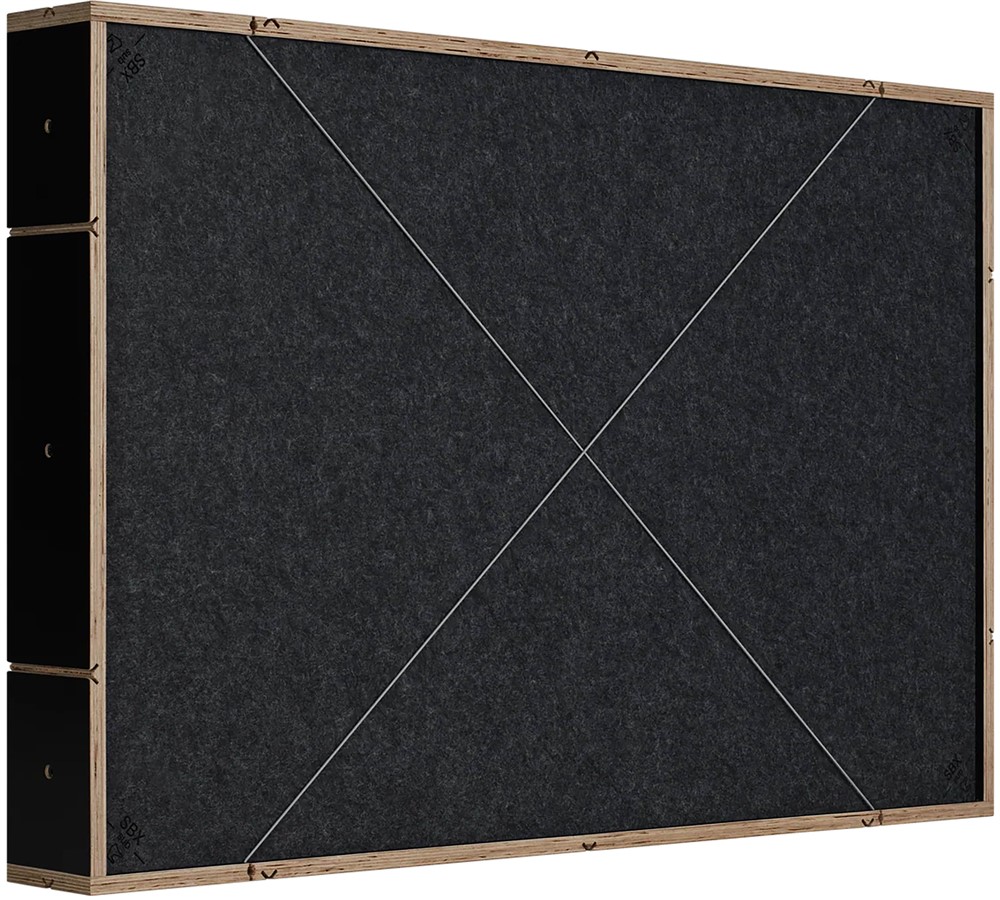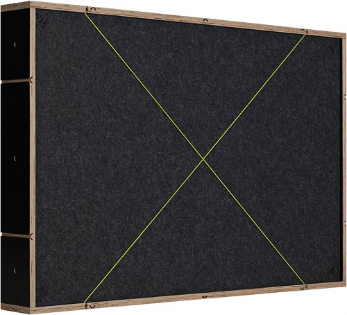 The SBX sub extends the performance of the SessionbloX system into the low-frequency spectrum, targeting the most difficult range to control in studio environments. Engineered as a modular bass trap, the sub integrates seamlessly with core panels to balance rooms where low-end build-up and standing waves are most challenging. Mastering the placement of the SBX sub panel in a room is essential for achieving the most efficient low-frequency control. The panel must be positioned in high-pressure zones, such as walls and corners where modal energy naturally accumulates. The SBX sub is a directional membrane absorber: its composite membrane is located on the back of the unit indicated by the wave, and must face a rigid boundary to function optimally.