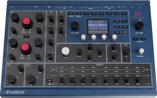 M är en kraftfull wavetable-synth som hyllar och återupplivar ljudet från klassiska Waldorf-syntar som Microwave I och II. Med äkta 8-rösters polyfoni (expandibelt till 16), dubbla wavetable-oscillatorer per röst, analoga filter och en tydlig användarpanel erbjuder Waldorf M både nostalgisk karaktär och modern flexibilitet. Du får tillgång till originalens varma och distinkta klangpalett, men med dagens bekvämligheter – som OLED-display, MIDI över USB, och omfattande modulationsmöjligheter. Waldorf M passar både för klassiska pads, vassa leads och experimentell ljuddesign, och är ett måste för dig som älskar den klassiska tyska wavetableskolan.