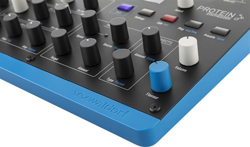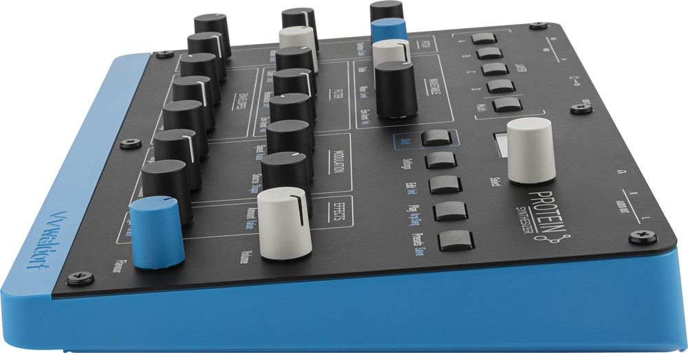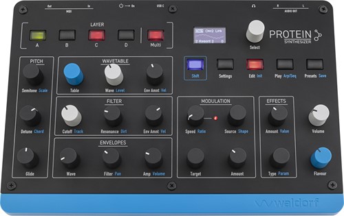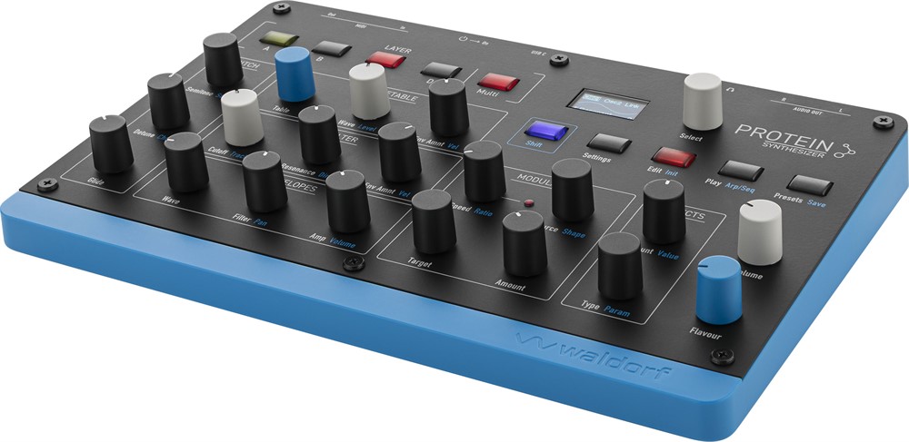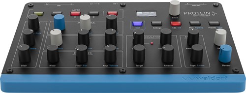 Protein is an affordable and compact 8 voice polyphonic Wavetable synthesizer based on the original Microwave 1 ASIC oscillators combined with modern features of Iridium heritage like the sophisticated arpeggiator, step sequencer, chord mode, effects and more. Protein links back to the very beginnings of Waldorfs instrument makings but interprets the original ideas in a contemporary and surprising way.