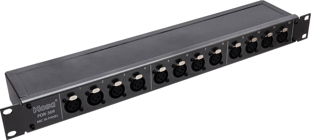 The PDR-369 XLR Patch Bay by Hosa Technology is designed to provide 12 channels of balanced audio throughput for any situation. It is ideal for making rear-panel microphone mixer inputs easier to reach.