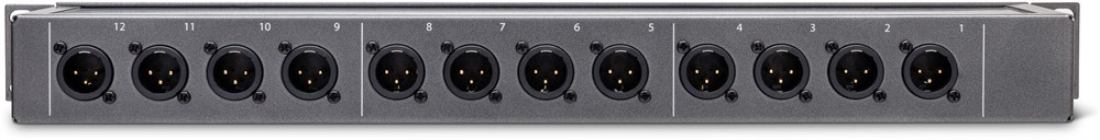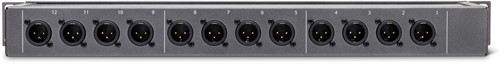 12 punkts patchbay med balanserade XLR, hona på framsidan och hane på baksida.